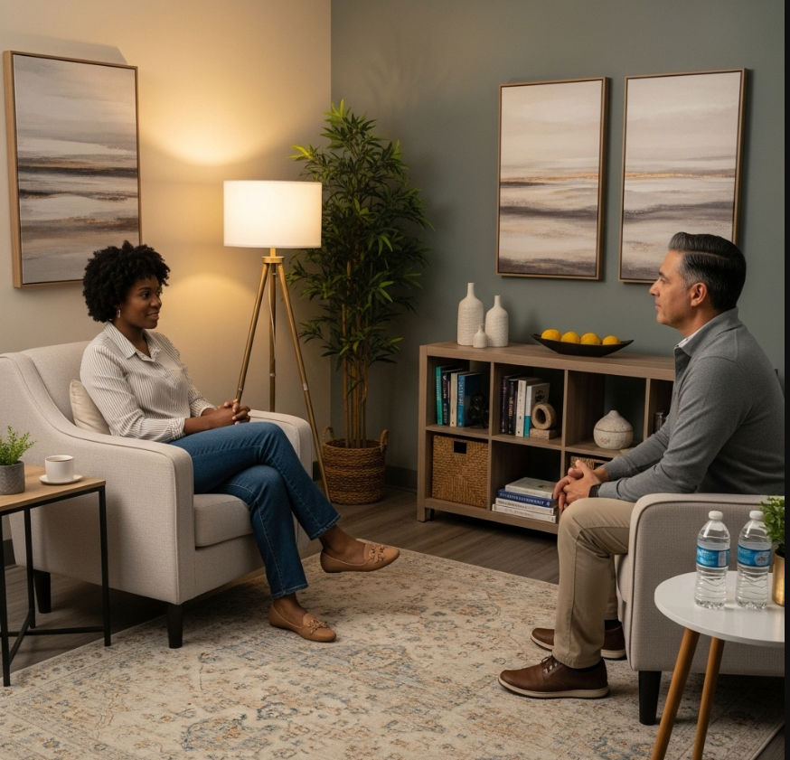 Sessions are conducted in a private, respectful, and confidential space where clients can speak openly without judgment.